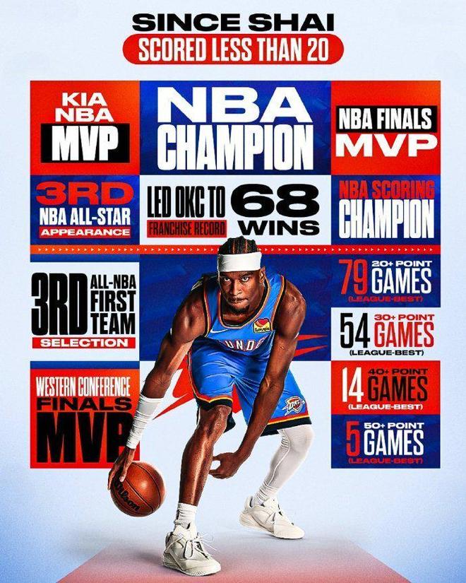 • 历史第三!亚历山大连80场20+太稳 8战7场30+冲得分王+MVP